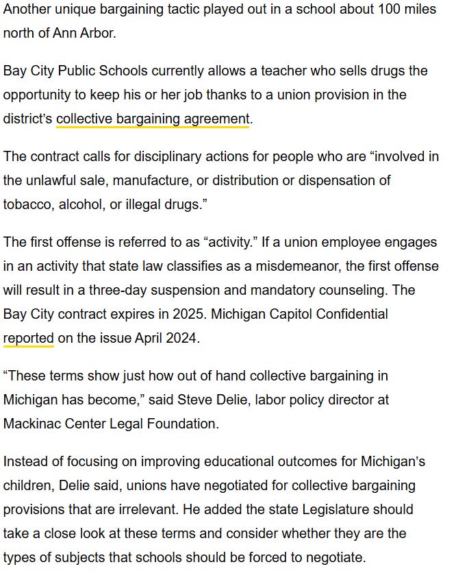 Michigan Teachers Union Contract Allows Teachers to Stay on the Job After Selling Drugs and Repeatedly Being Drunk at School